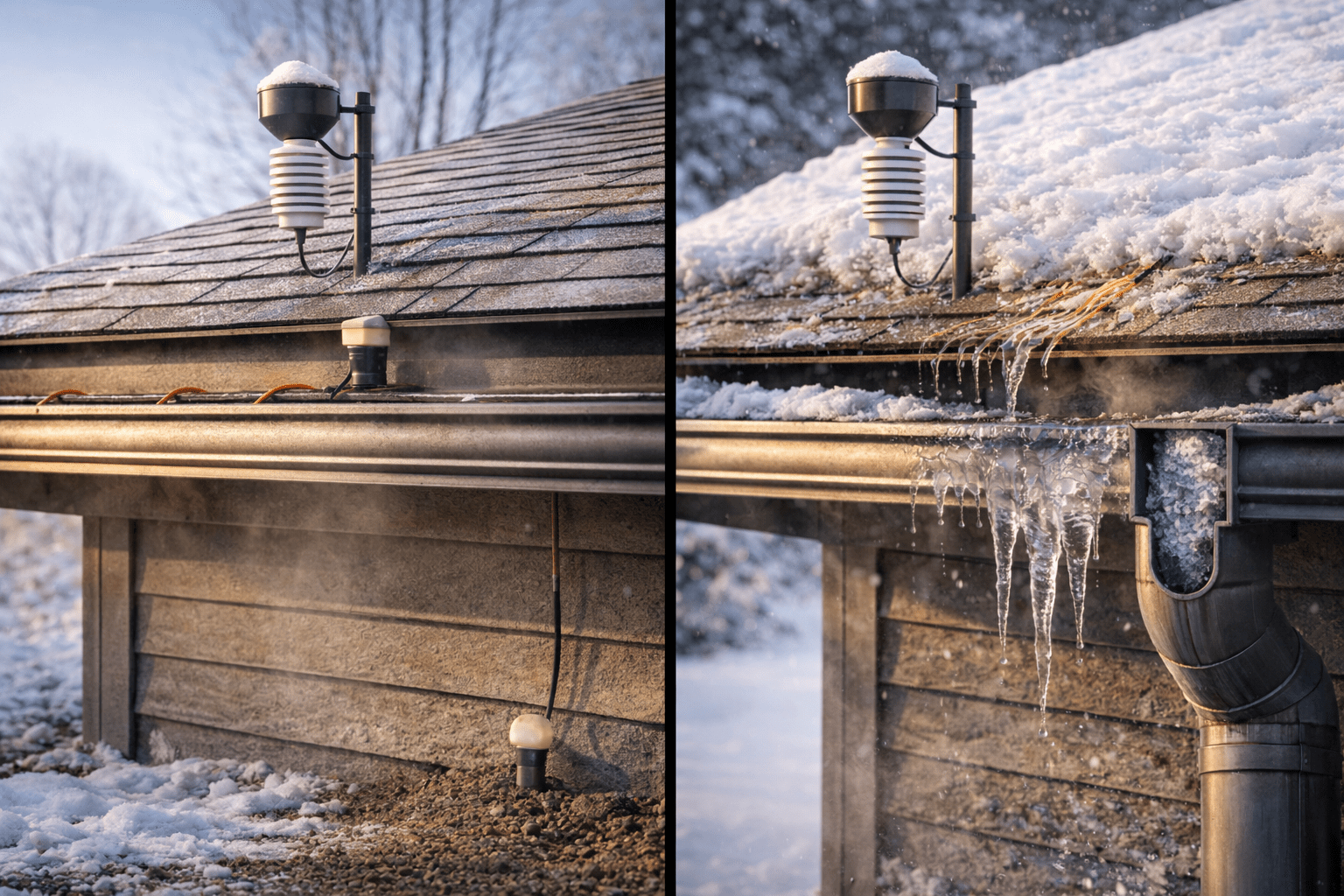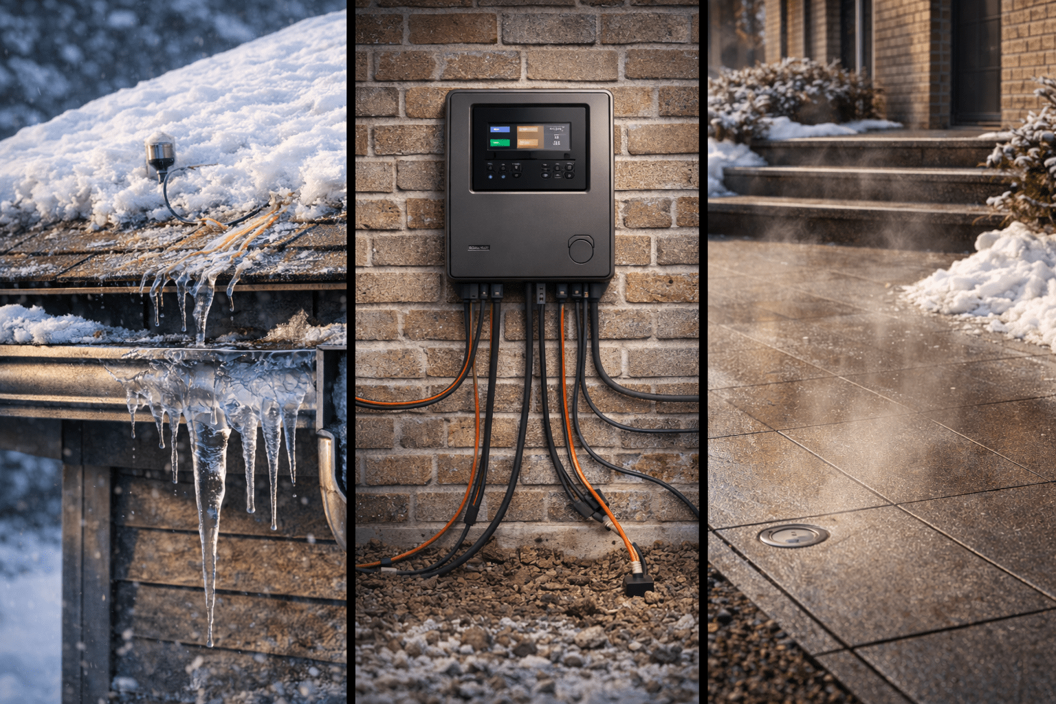 Эффект: система не включается в сухую погоду, работает при снегопаде и температурах около 0°C — именно тогда, когда образуется лёд. Экономия до 70% по сравнению с термостатом.