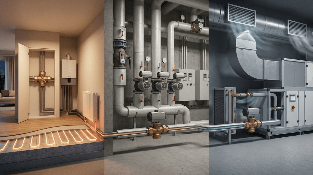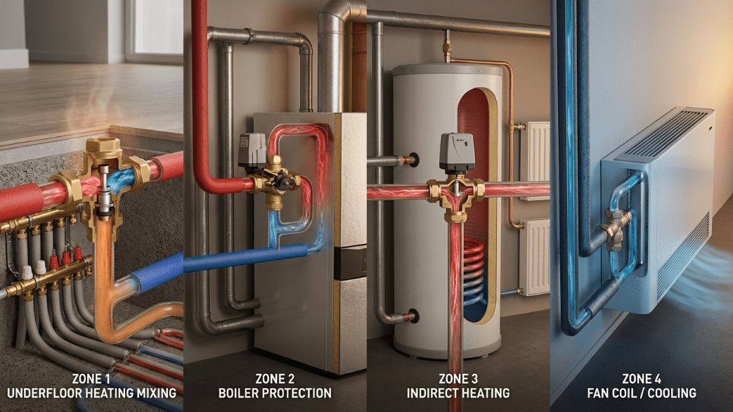 В частных домах эти устройства абсолютно незаменимы для комфортной работы радиаторной сети и низкотемпературных контуров напольного отопления. В промышленных котельных и центральных тепловых пунктах они обеспечивают погодозависимое регулирование всей теплосети. Также они массово применяются в системах вентиляции и кондиционирования (HVAC) для точного контроля теплообменников.